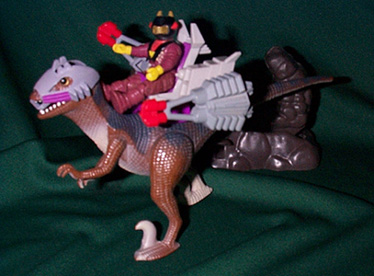 dinosaurs. Notice the trap behind the dinosaur and its rider.