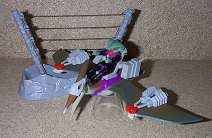 The Pteranodon is the most commonly used flying type of dinosaur used by the Rulons. Notice the dinosaur trap in the background.